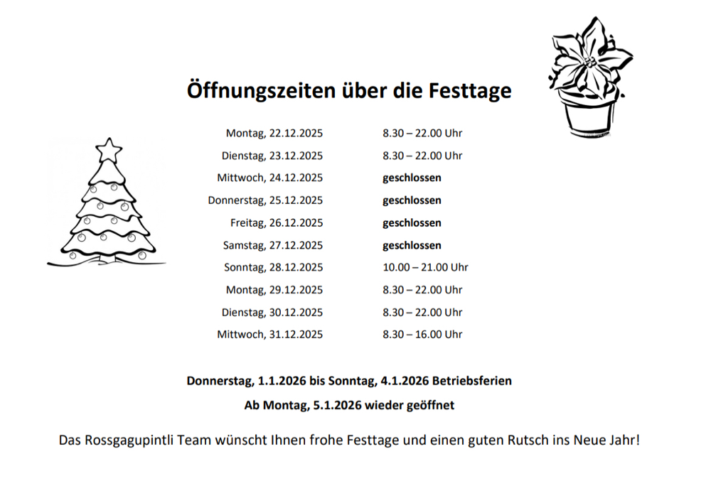 Ruhetag (Auf Anfrage öffnen wir gerne für Gruppen ab 20 Personen - geschlossene Gesellschaft)